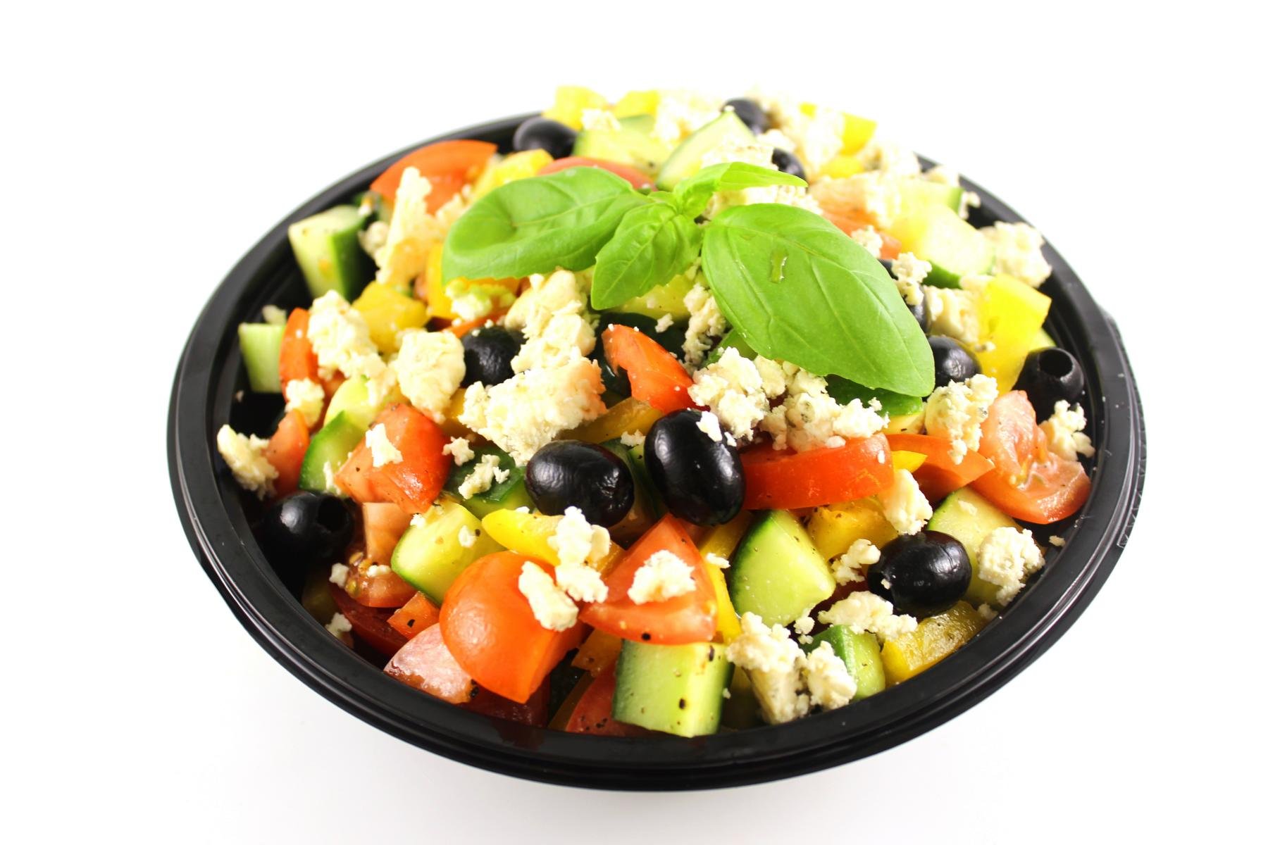 Míchaný zeleninový salát s černými olivami a strouhanou nivou alergen 7