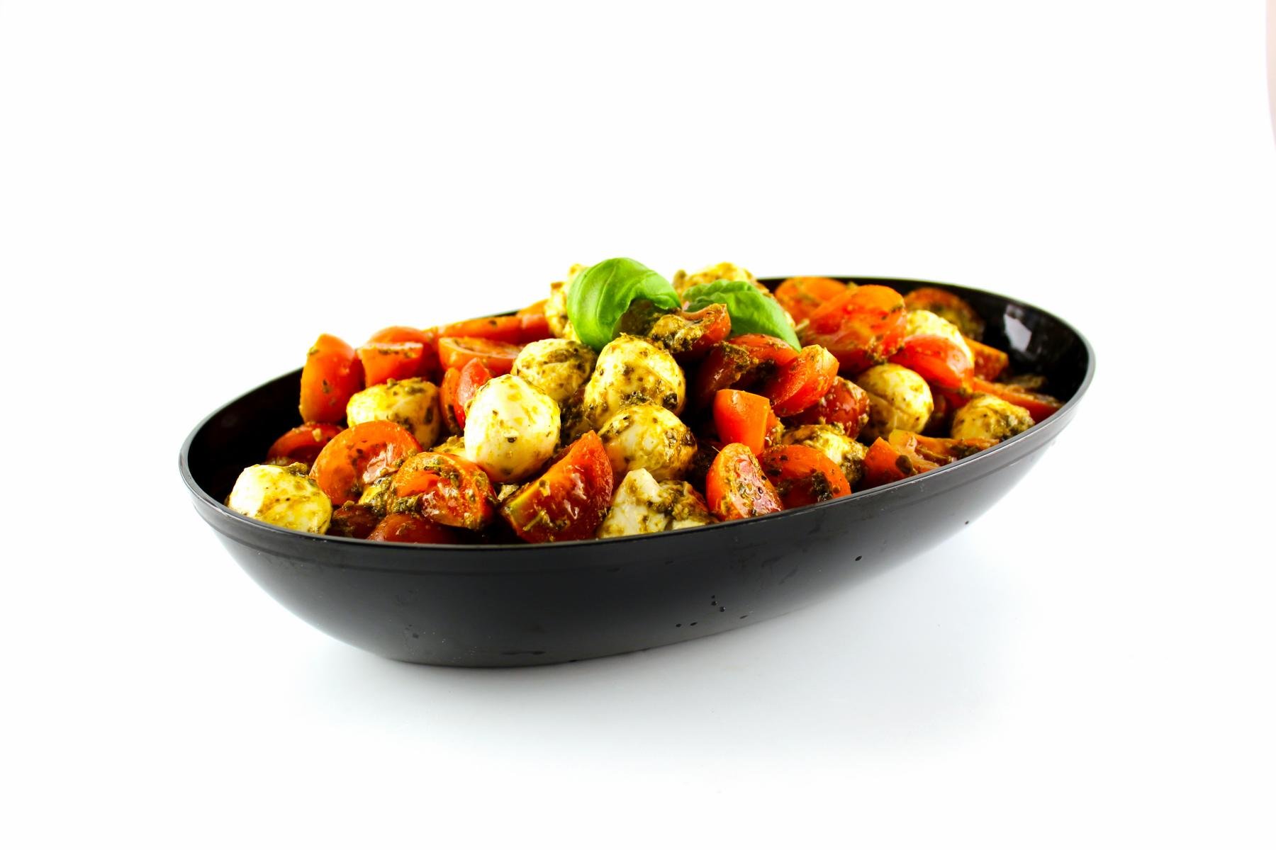 Caprese salát - cherry rajčata, baby mozzarella, bazalkové pesto alergen 7